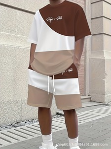 夏季男新款跨境亚马逊时尚休闲宽松圆领短袖体恤套装源头工厂批发