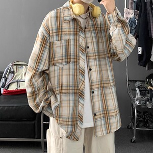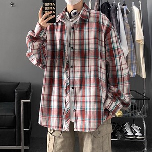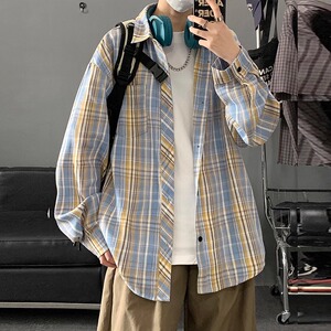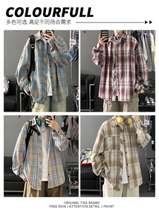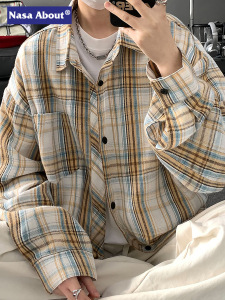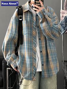 NASA春秋季格纹翻领衬衫休闲宽松上衣2025新款潮流百搭高级感衬衣
