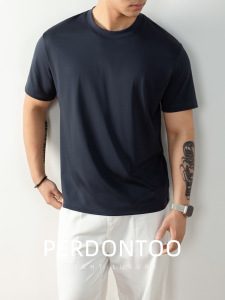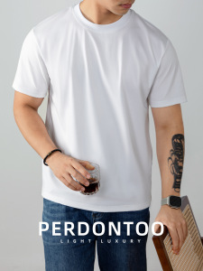 200支双面液氨丝光棉凉感圆领短袖T桖男士纯白色夏季百搭休闲上衣