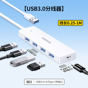 绿联usb拓展坞插头多口一分二集分线器typec延长线hub3.0外接u盘