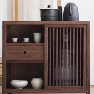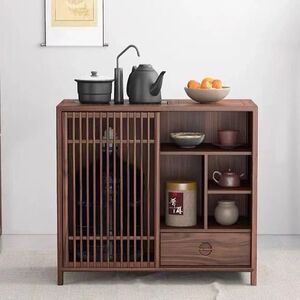 中式实木榆木茶水一体移动la家用边柜简约茶桌客厅烧水多功能储物