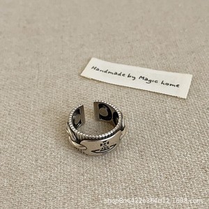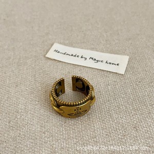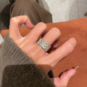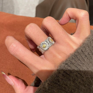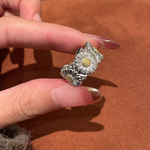 中古风宽面开口拉丝黄雏菊银戒指男女同款永恒戒指GD权志龙同款