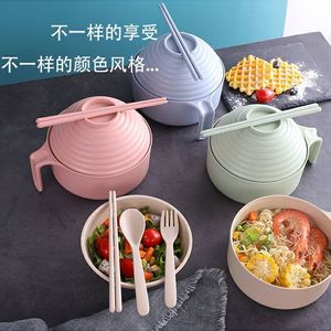 日式泡面碗学生宿舍泡面碗带盖小用上班族简碗筷套装