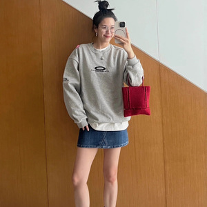 小众 O@KLEY刺绣基础圆领抓绒卫衣男女情侣宽松上衣潮牌ins秋冬