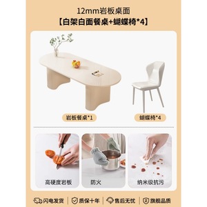 【长方形纯白岩板】单桌+蝴蝶椅*4