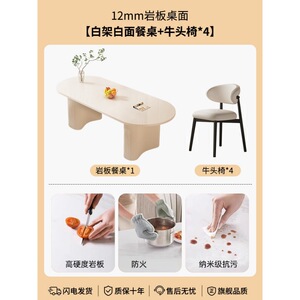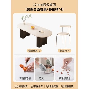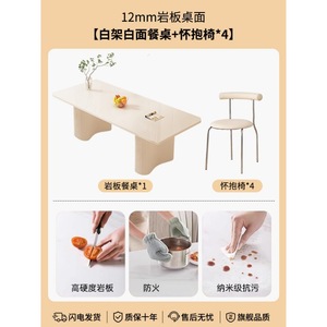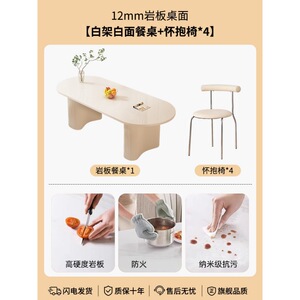 【双圆纯白岩板】单桌+怀抱椅子*4