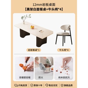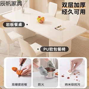 轻奢高级感岩板餐桌 餐桌岛台一体法式奶油风小户型餐桌