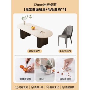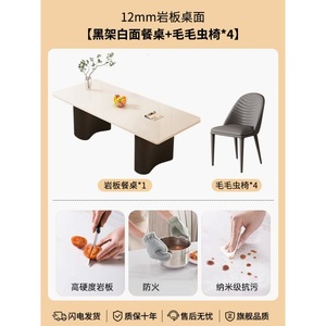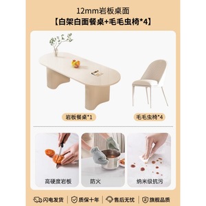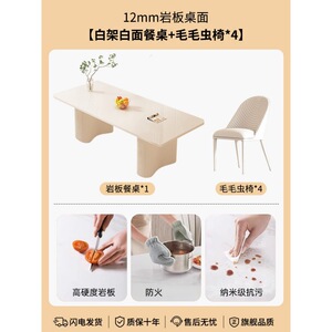 【长方形纯白岩板】单桌+毛毛虫椅*4