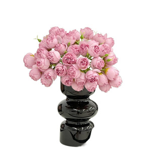 黑色轻奢中古花瓶+粉花2束