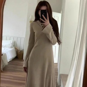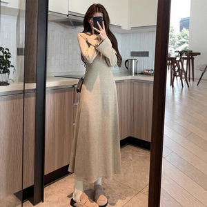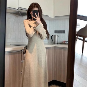 韩系设计感连帽长袖针织连衣裙女秋季新款修身显瘦百搭气质长裙子