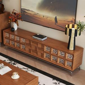 法式中古风实木白蜡木电视柜客厅家用置物落地柜收纳边柜一体地柜