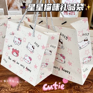 可爱星星猫白卡手提袋大容量生日礼物包装袋精致ins手拎袋加厚