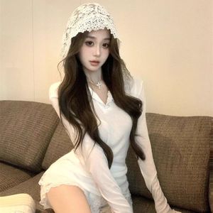 白色设计感蕾丝拼接长袖T恤女冬季修身显瘦连帽上衣内搭打底衫女