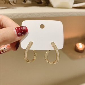 韩国东大门S925银针微镶锆石镂空水滴气质百搭耳环耳钉女小众耳饰