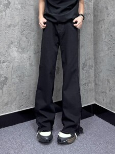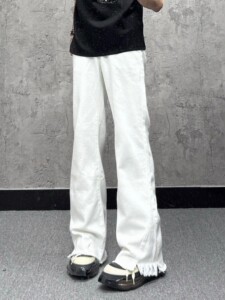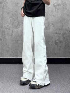 美式垂感白色直筒微喇牛仔裤男春秋新款复古纯色宽松休闲弯刀长裤