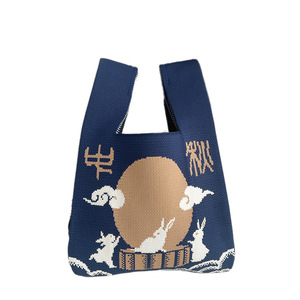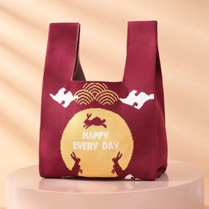 原创设计中秋节月兔针织手拎包百搭大容量月饼包装礼盒袋手提袋女