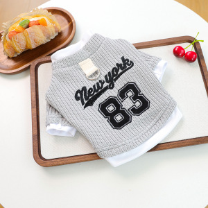 宠物衣服秋冬新款小型犬幼犬快乐狗猫保暖舒适纽约假两件卫衣
