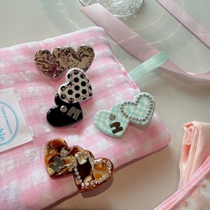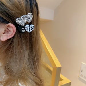 高级感醋酸双爱心拼接水钻发夹小众设计气质刘海碎发夹鸭嘴夹头饰