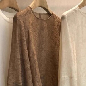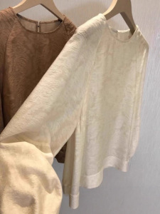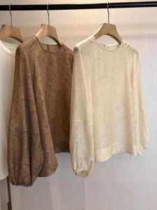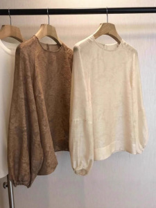 胖MM特大码300斤法式灯笼袖提花宽松圆领衬衫女T恤春遮肉长袖上衣