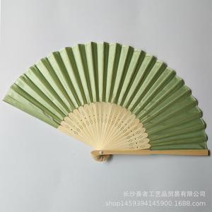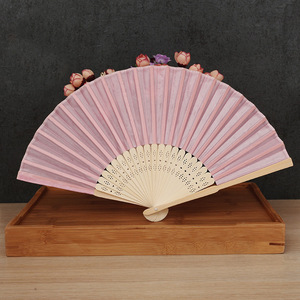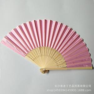 素面婚礼丝扇21CM婚礼布扇绢扇婚礼回礼扇DIY折扇丝印雕刻金色