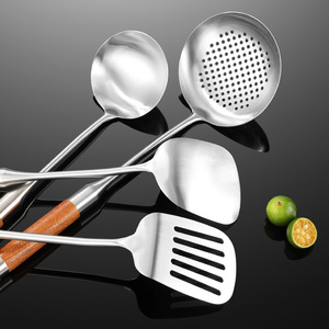 316不锈钢炒勺炒菜勺蘑菇铲子食品级家用厨具花梨木柄锅铲套装