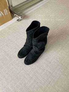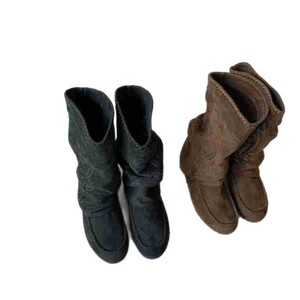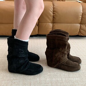 刺绣中筒马丁靴女2025年新款复古圆头内增高堆堆靴短靴子