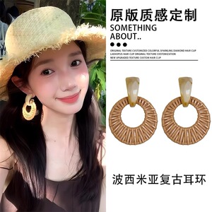 民族风编织耳环女波西米亚度假风耳钉小众高级设计感复古耳坠耳饰