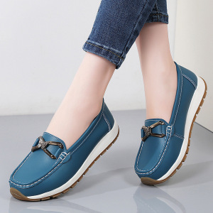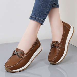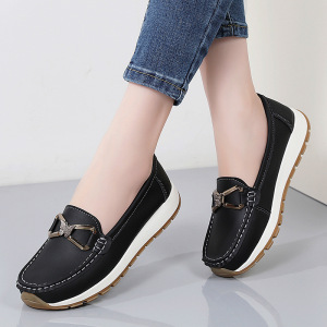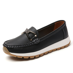 跨境大码女鞋女圆头防滑女士豆豆鞋单鞋女款妈妈鞋休闲单鞋乐福鞋