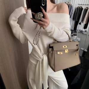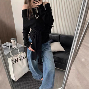 十三行含细羊毛【早秋女孩穿搭】慵懒风舒适荡领飘带收腰显瘦针织
