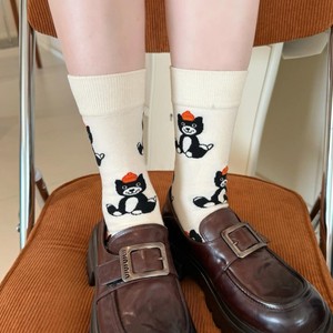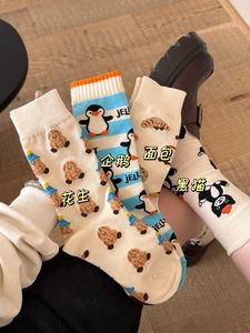 可爱个性卡通袜子女中筒袜春秋款韩版ins潮网红企鹅长袜情侣长袜