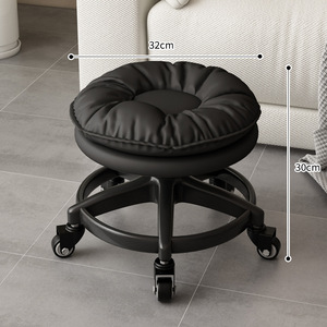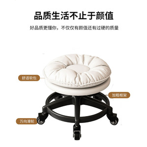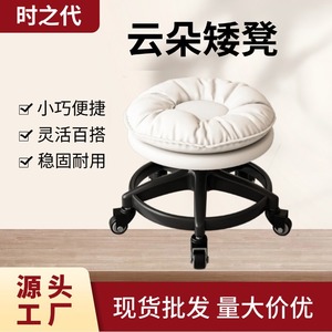 万向轮小凳子带滑轮矮凳家用换鞋凳儿童靠背椅子客厅圆凳软包板凳
