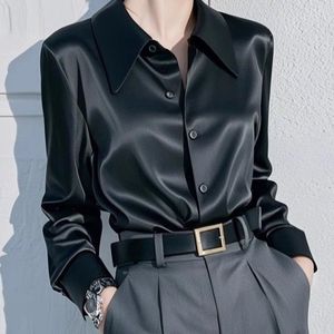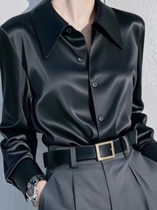 高级感气质翻领衬衫女长袖早春新款缎面职业上衣百搭显瘦衬衣