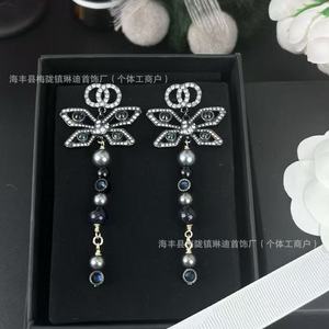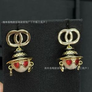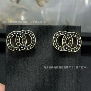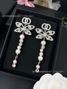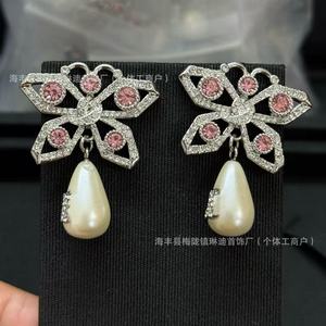 新款香家法式花朵名媛宫廷光面镶钻字母珍珠耳钉耳环耳饰品潮