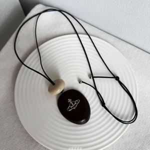 黑檀木烧银色爱心皮绳项链小众高级感设计锁骨链土星气质百搭项饰