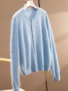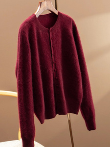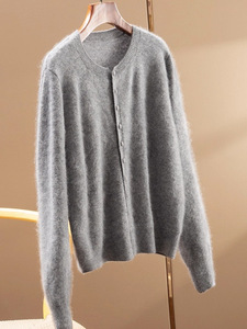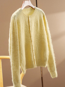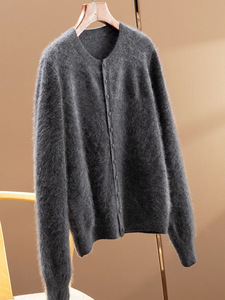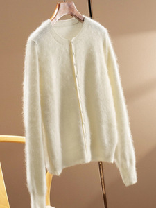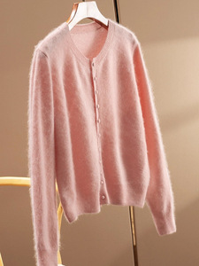 福利大破价 法G糖果色羊绒羊毛拉绒圆领毛衣开衫外套女米白色粉色