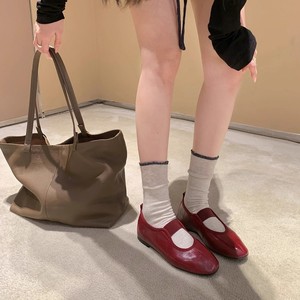 葡萄妈同款芭蕾女羊皮法式圆头一字弹力带百搭舒适玛丽珍鞋女春夏