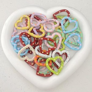 ♔糖果色烤漆爱心弹簧圈彩色开口心形弹簧扣小圆合金挂扣饰品配件