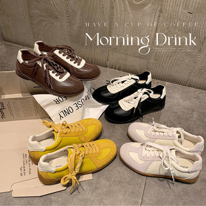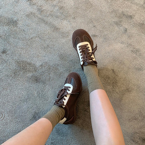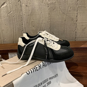 经典复古拼色圆头德训鞋夏季运动休闲板鞋女真皮百搭舒适阿甘鞋子