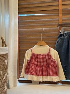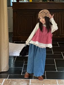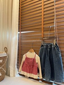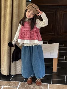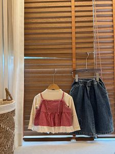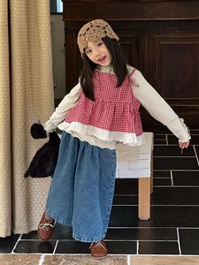 简约ins风中小韩系女童2025秋季新款甜美格子上衣两件套装牛仔裤