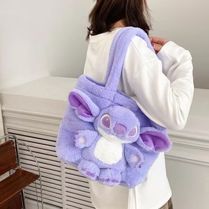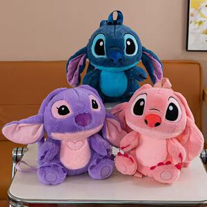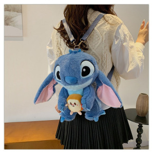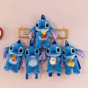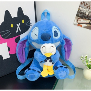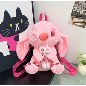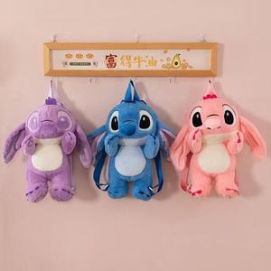 跨境史迪仔毛绒卡通双肩背包女童可爱外星狗抱小金单肩斜挎包批发