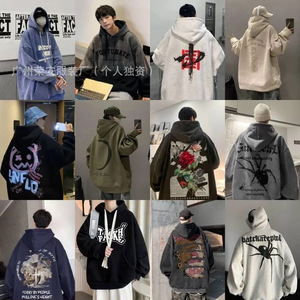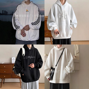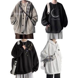 卫衣男潮2025秋冬新款纯棉毛圈棉宽松大码圆领男士 长袖运动t恤衫