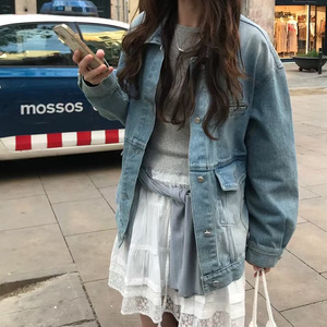 2025秋季新款韩国东大门复古休闲翻领宽松显瘦夹克浅色牛仔外套女