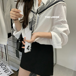 柠檬绿茶设计感小众衬衫女秋季新款韩版宽松慵懒风女上衣带丝巾