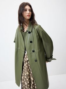 黄亦枚同款高端英伦真皮皮风衣女新款中长款绵羊皮外套厂家批发