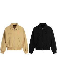 11KN美式复古工装夹克男女设计贴布刺绣做旧宽松百搭翻领外套上衣