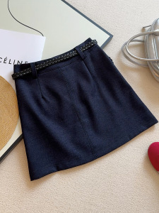 复古仿牛仔短裙女2025早秋新款小个子显瘦高腰外穿百搭直筒包臀裙
