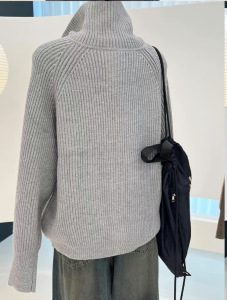 新品女士针织双拉链开衫外套 亚马逊跨境欧美加厚慵懒开衫女