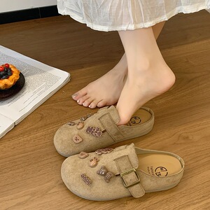 时尚百搭厚底包头半拖鞋女外穿2025新款春秋款休闲懒人凉拖鞋防滑