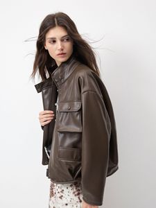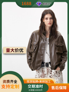 超重工菱形切割面复古帅气绵羊皮外套女工装风真皮皮衣厂家批发