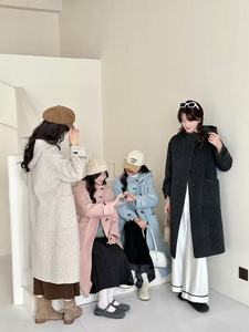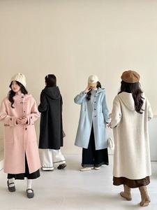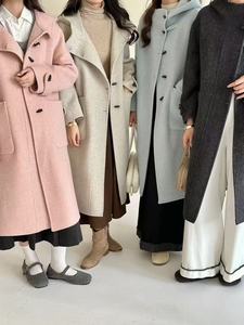 白月光 新减龄甜美连帽牛角扣韩系阔版加长加厚款双面羊毛大衣女